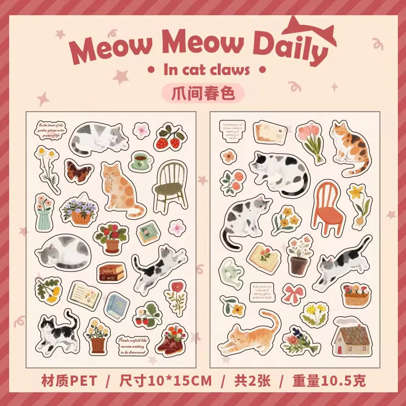 Cute Cat handbook Pre Cut Sticker Sheets
